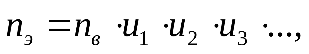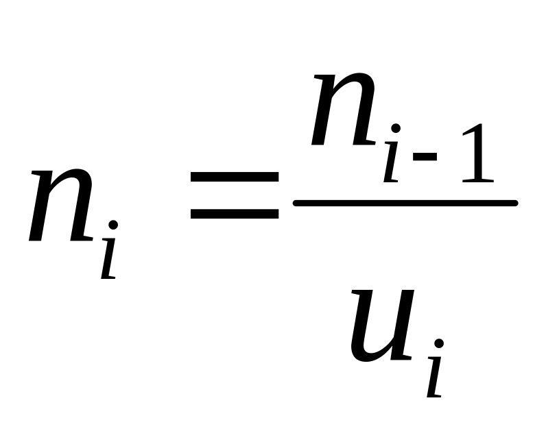 Частоты вращения валов могут быть определены через частоту вращения вала электро-двигателя. Если вал редуктора непосредственно соединяется с валом электродвигателя, то: