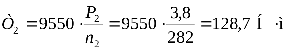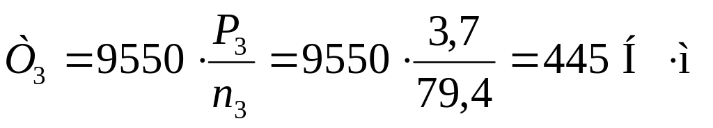 Крутящие моменты на валах определяют по формуле