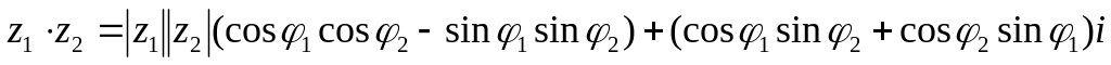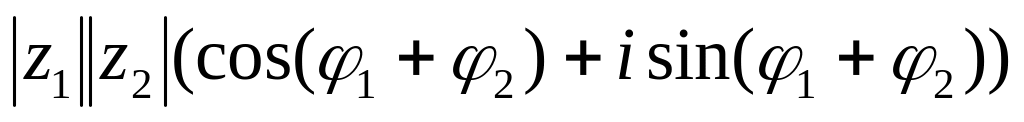 Т.о., для умножения z1 на z2 модули этих чисел следует перемножить, а аргументы сложить.
