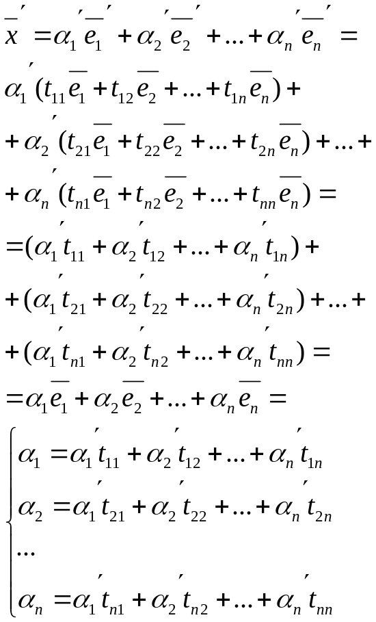 14(411)Матрица перехода от базиса к базису. Преобразование координат вектора при переходе к новому базису.