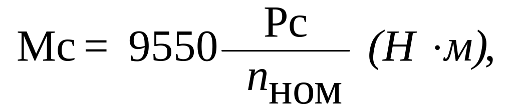 где Рс – значение мощности при пуске электродвигателя, кВт; nном – номинальная частота вращения двигателя (из справочника).
