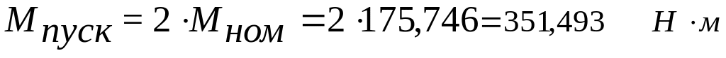 Выбранный двигатель следует проверить на достаточность развиваемого им пускового момента. Эту проверку проводят, исходя из условия: