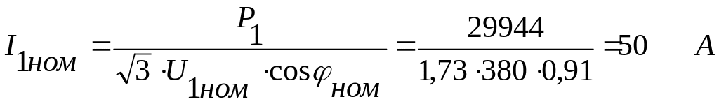 I1ном – потребляемый двигателем ток при номинальной нагрузке, А;