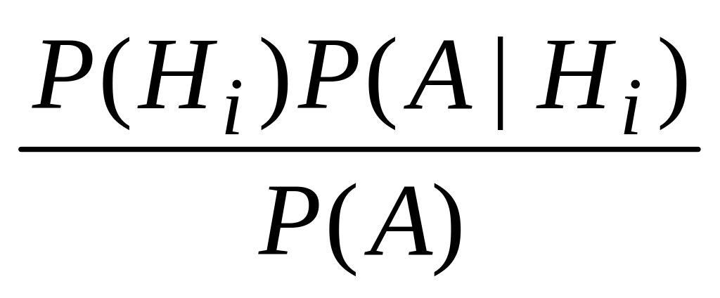 Тогда любое рассматриваемое событие A может произойти только одновременно с осуществлением одной из гипотез H1, H2,…, Hn. То есть A = A H1 A H2 … A Hn. Поскольку события A H1, A H2,…, A Hn – несовместны, P(A) = P(A H1) + P(A H2) + … + P(A Hn). Применив теорему умножения вероятностей, можно записать: P(A Hi) = P(Hi)P(A|Hi).