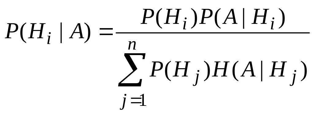 Частным случаем применения теорем сложения и умножения вероятностей является формула Байеса. При решении многих практических задач часто встречаются с ситуацией, когда прямое вычисление вероятности события A трудно или невозможно, в то время как вполне доступно определение вероятности этого события при некоторых различных условиях Hi.