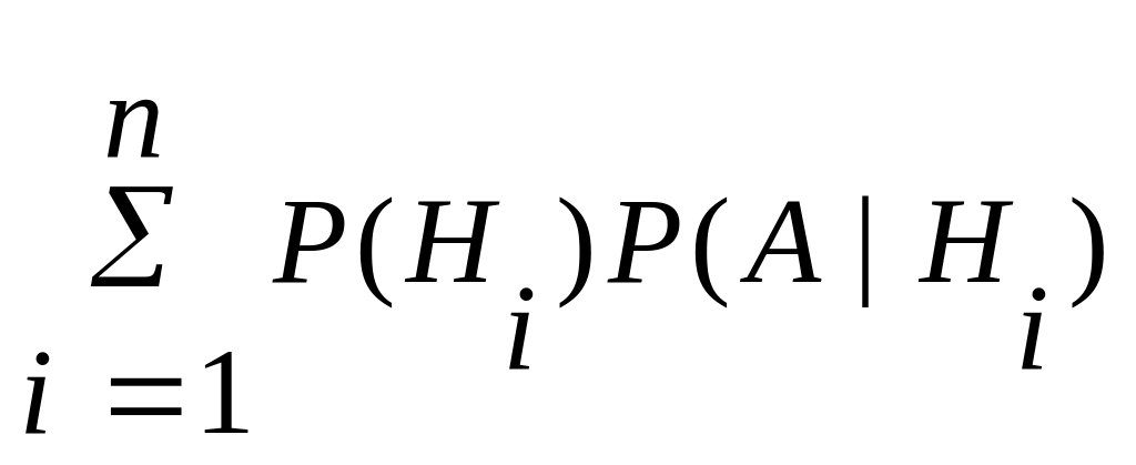 Поскольку заранее неизвестно, какое из событий Hi произойдет, эти события называют гипотезами. Предполагается, что вероятности гипотез известны и равны соответственно P(H1), P(H2),…, P(Hn). Так как события H1, H2,…, Hn несовместны и образуют полную группу событий, то P(H1)+ + P(H2)+…+P(Hn) = 1.