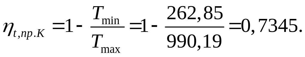 Итак, рассмотренный термодинамический цикл значительно уступает по эффективности соответствующему предельному циклу Карно. Это обусловлено тем, что количества подводимой и отводимой теплоты в цикле близки.
