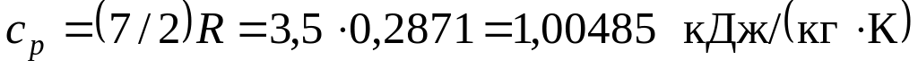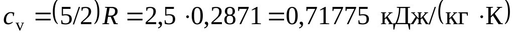 где изохорная теплоёмкость сv по упрощенной МКТ для воздуха, как двухатомного газа, рассчитывается из соотношения