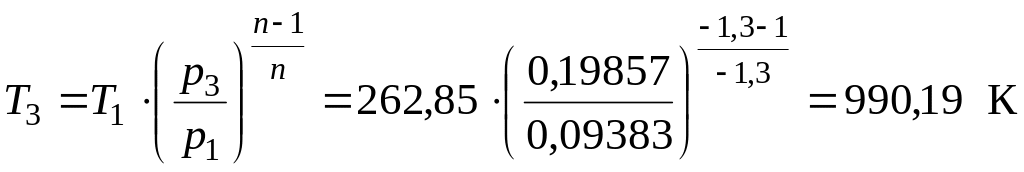 Термические параметры рабочего тела (воздуха) в характерных точках цикала: