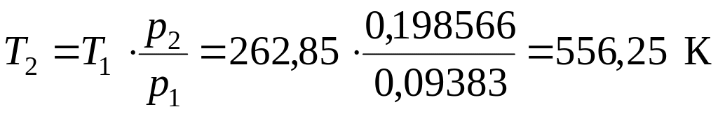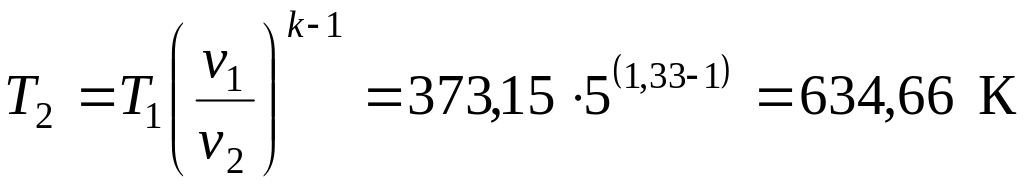 параметры метана в точке 2 (процесс 1-2 – адиабатный):