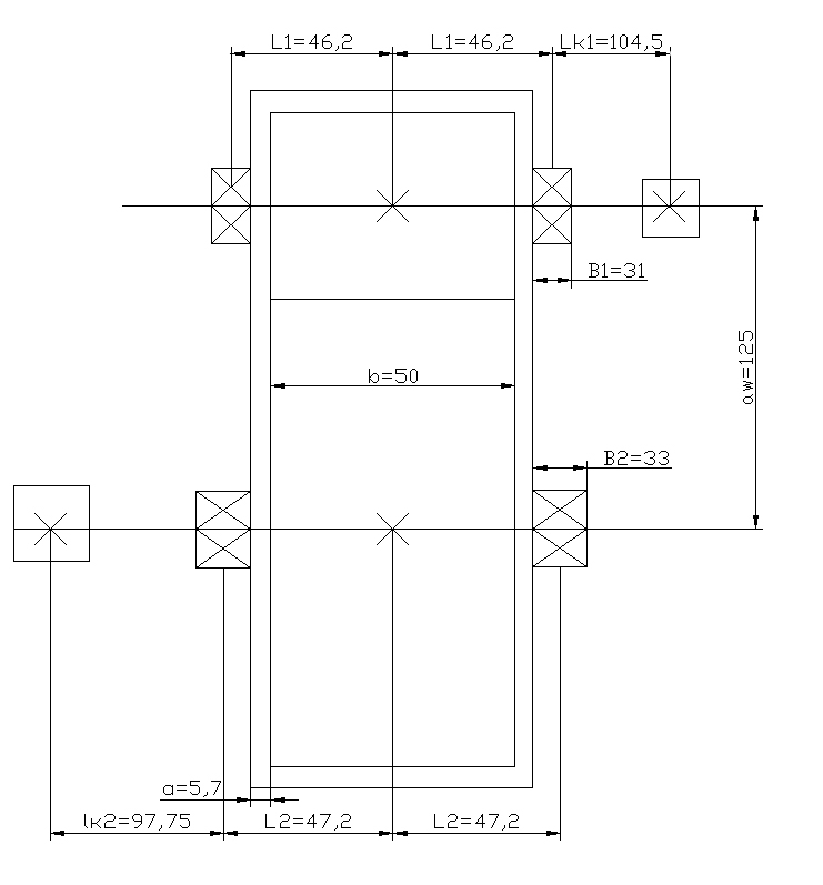 исунок 4.3 - Компоновочна схема одноступінчатого редуктора