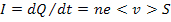 Выразим силу и плотность тока через скорость <v> упорядоченного движения зарядов в проводнике. Если концентрация носителей тока равна n и каждый носитель имеет элементарный заряд e, то за время dt через поперечное сечение S проводника переносится заряд dQ=ne<v>Sdt.Сила тока