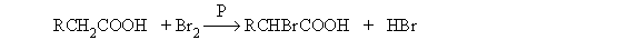 Карбоновые кислоты, содержащие a -водородные атомы, взаимодействуют с бромом в присутствии фосфора с образованием исключительно α-бромпроизводных (реакция Гелля – Форгальда - Зелинского)