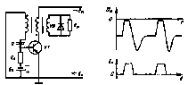 На рис. 4.10. а приведена схема блокінг-генератора, який працює в автоколивальному режимі. Розглянемо принцип дії схеми, починаючи з моменту, коли конденсатор С зарядився до свого максимального значення Um, яке закриває транзистор. Через опір резистора RБ проходить перезарядка конденсатора С. Швидкість перезарядки відносно тривалості робочого імпульсу мала і визначається постійною часу RБС. при досягненні на ємності потенціалу, що дорівнює +ЕБ, на базі буде нульовий потенціал відносно емітера. Час перезарядки є паузою між робочими імпульсами. Як тільки напруга на базі стане дорівнювати нулю, через транзистор потече малий струм. Збільшення колекторного струму викликає появу ЕРС самоіндукції в колекторній обмотці. Зростає магнітний потік і осерді, і в базовій обмотці з’являється ЕРС взаємоіндукції. Полярність ЕРС в базовій обмотці така, що до бази транзистора прикладається «мінус», а до емітера «плюс». Розвивається лавинний процес. В ході цього процесу формується фронт робочого імпульсу. Цей процес називається прямим блокінг-процесом. Звідси і пішла назва генератора. Закінчується лавинний процес повним відкриванням транзистора і переходом його в насичений стан, який характеризується зупинкою зростання струму колектора. Зупинка зростання струму колектора обумовлює закінчення лавинного процесу. Іде формування вершини плоскої частини робочого імпульсу (рис. 4.10, б). На цьому етапі відбувається розсовування неосновних носіїв, накопичених на базі. Час розсовування неосновних носіїв визначає тривалість плоскої частини робочого імпульсу. Неосновних носії мірі розсовування в базі стає менше, і транзистор виходить із насичення, отримуючи підсилюючі властивості. Зменшення струму колектора викликає появу на базі транзистора ЕРС позитивної полярності, що призводить до ще більшого зниження струму бази і струму колектора. Знову розвивається лавинний процес, який називається зворотним блокінг-процесом. За цей час напруга на конденсаторі С і магнітна енергія осердя не встигають змінитися. Після закривання транзистора від’ємна напруга продовжує зростати. Отримується характерний для блокінг-генератора викид напруги, який пояснюється розсіюванням енергії, накопиченої в осерді трансформатора за час формування вершини робочого імпульсу. Цей викид, додаючись до напруги на колекторі, може досягнути значення напруги UK ≤ 2EK, більшої максимально допустимої для даного транзистора. Після викиду можуть настати затухаючі коливання, які своїми тривалими півперіодами можуть виробляти неправдиві спрацювання блокінг-генератора, перетворюючи його в звичайний LC-генератор. Для виключення неправдивих спрацювань в навантажувальну обмотку ставлять діод, який зрізає від’ємний півперіод.