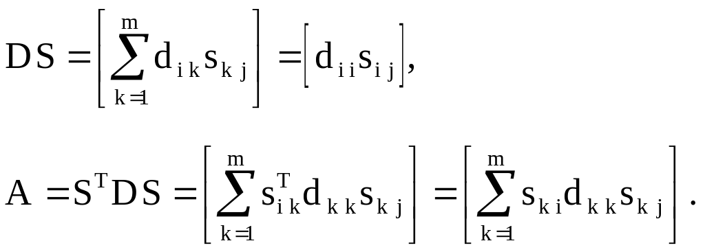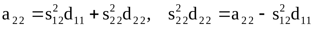 При i = j получаем соотношения для вычисления диагональных значений матриц S и D: