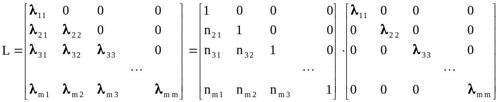 Согласно теореме 2.1 при неравенстве нулю всех угловых миноров матрицу А можно разложить в произведение A = LU.
