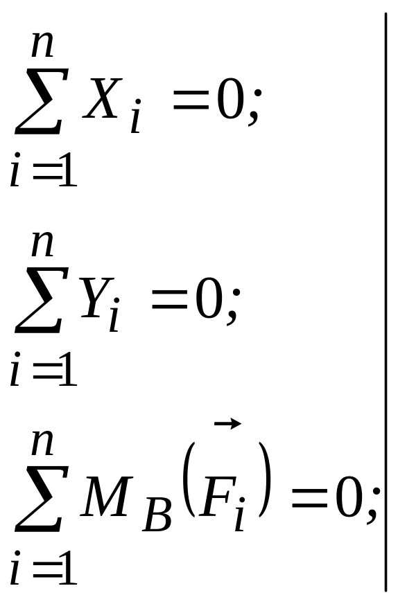 4. Вкажіть аналітичні умови рівноваги довільної плоскої системи сил.
