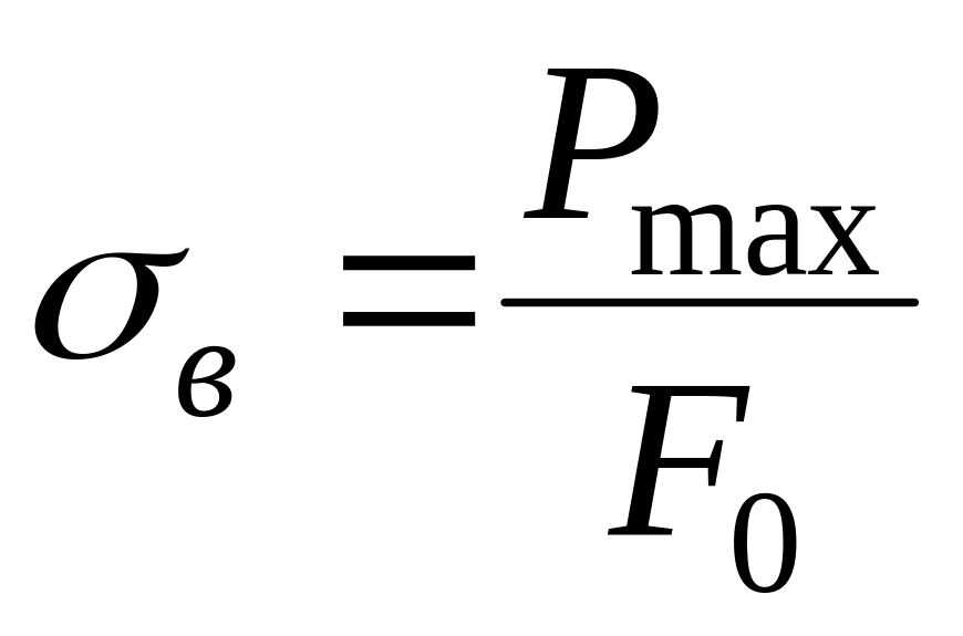 Предел прочности при растяжении, σв – условное наибольшее напряжение, выдерживаемое образцом при испытании на разрыв. Оно, получается, от деления максимальной нагрузки, предшествующей разрушению образца на его начальную площадь поперечного сечения.