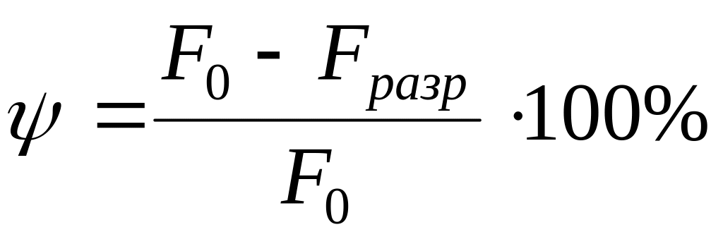 Относительное сужение, ψ – отношение уменьшения площади поперечного сечения образца после разрыва к начальной площади поперечного сечения, выраженное в процентах.