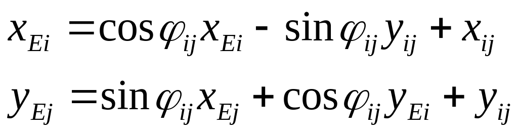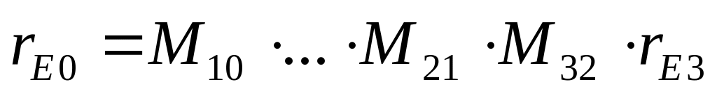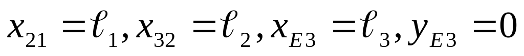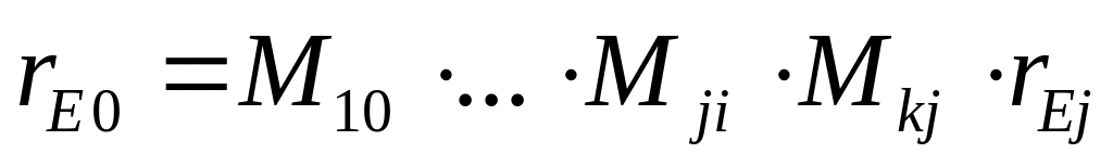 Рис. 2.11 Положение произвольной точки Е в незамкнутой кинематической цепи.
