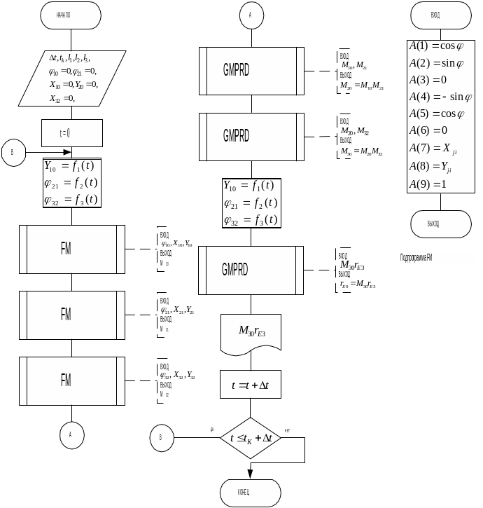 Полученные выражения могут быть использованы для составления алгоритма, блок-схема которого может быть построена по следующей схеме