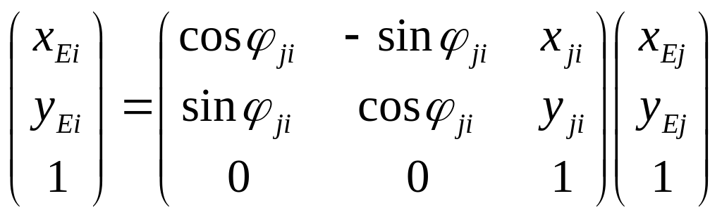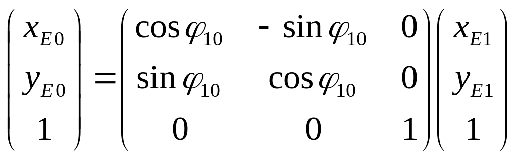 Для решения этой задачи произведем последовательный переход от координат точки Е в системе к её координатам в системе .
