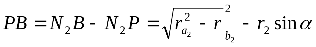 Последней точкой в зацеплении будет точка С 1-го колеса. Поэтому последней точкой зацепления будет точка пересечения окружности вершин 1-го колеса с линией зацепления – т. В.
