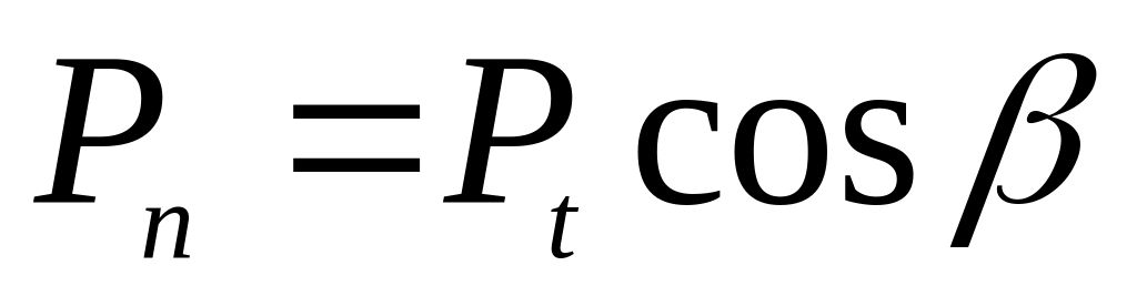 Тогда следы зубьев на этом цилиндре изобразятся прямыми линиями. Расстояние Pt называют торцовым шагом, а расстояние Pn нормальным шагом. Они связаны зависимостью.