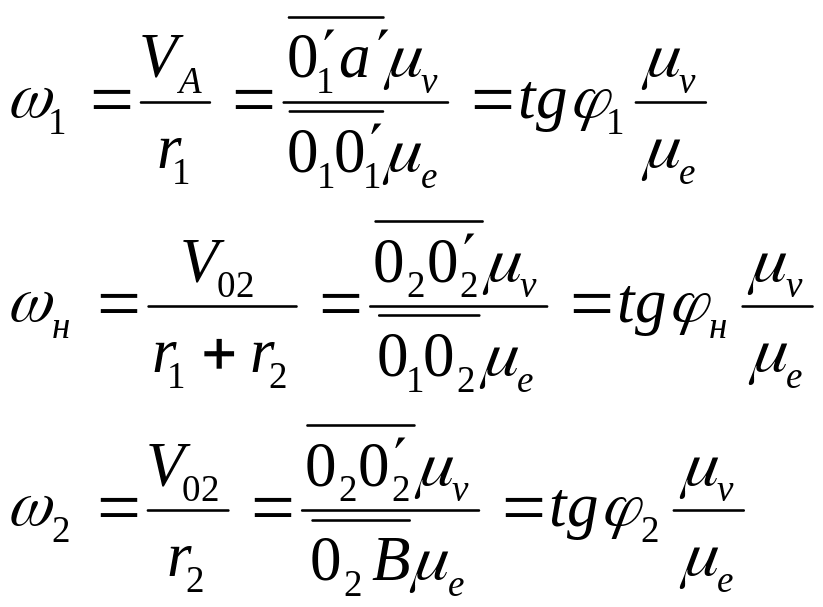 Таким образом, угловые скорости пропорциональны тангенсам углов наклона линий скоростей.