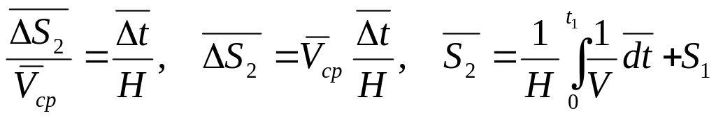 Рассмотрим технику интегрирования рис. 2.6. Делим график ординатами. Получаем четырехугольники с криволинейным очертанием. Заменяем площадь этих фигур, площадью равновеликого прямоугольника. Прямые 1-1, 2-2, 3-3 и т. д. следует проводить так, чтобы заштрихованные площади были равны. На продолжении оси t графика V(t) влево откладывает полюсное расстояние Н. Полюс соединяем с точками на оси OV пересечения её с прямыми 1-1, 2-2. Из начала координат графика S(t) проводим хорды параллельные соответствующим прямым графика V(t) выходящим из полюса. Эти прямые на графике S(t) при пересечении с ординатами из точек разметки оси определяют перемещение в выбранный момент времени 0, 1, 2, 3, т. д.
