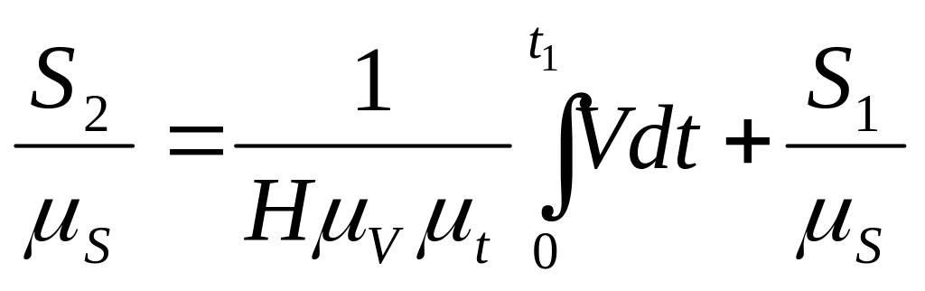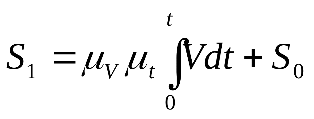 Таким образом, перемещение за время пропорционально площади, заключенной между ординатами начальной и конечной скорости за это же время, умноженной на квадратичный масштаб.