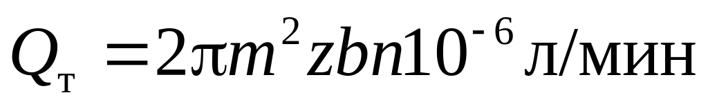 Для насосов с шестернями, корригированными по изложенной системе, теоретическая подача определяется по формулам: