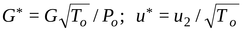 где индекс "п" определяет значение величины на границе помпажа, а "р" - относится к значениям параметров в расчетной рабочей точке А (см. рис.14).