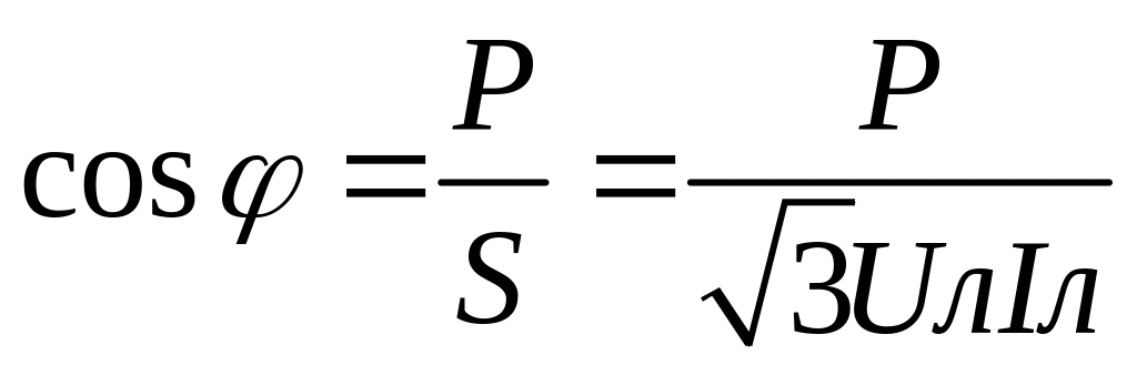 Коэф. мощности симметричной 3-фазной цепи находят как отношение активной мощности к полной мощности