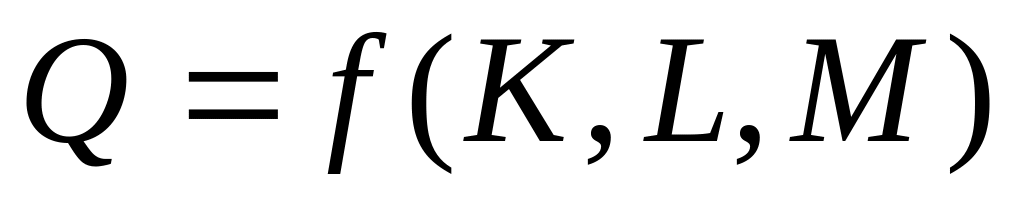 Где Q – максимальный объем продукции, кот. возможен при заданной технологии и опред ф-рах произв-ва. К – затраты капитала, L – затраты труда, М – затраты сырья и мат-ов.