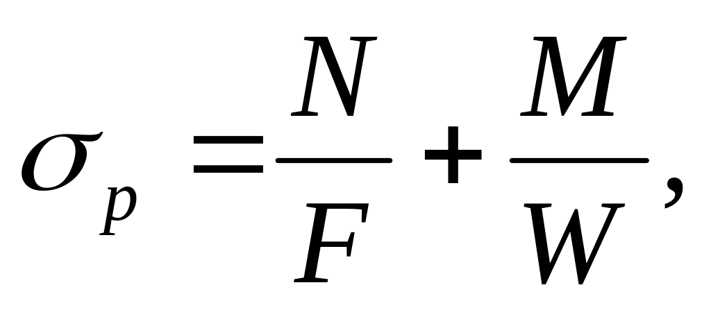 где N — растягивающее усилие; М — изгибающий момент; F — площадь поперечного сечения ребра; W — момент сопротивления ребра.