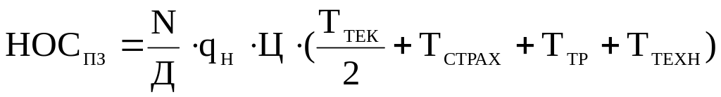 Норматив оборотных средств в производственных запасах вычисляется как сумма текущего, страхового, технологического и транспортного запаса.