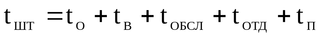 tО, tВ, tОБСЛ, tОТД, tП – время соответственно основное, вспомогательное, обслуживания рабочего места, на отдых и личные надобности, перерывов по организационно-техническим причинам (регламентированные)