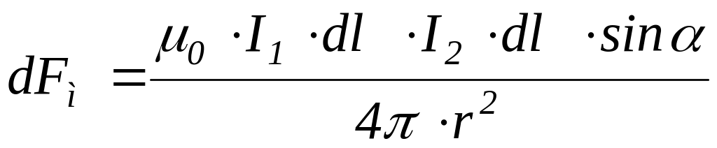 Если элементы тока расположены параллельно, то сила взаимодействия между ними определяется выражением