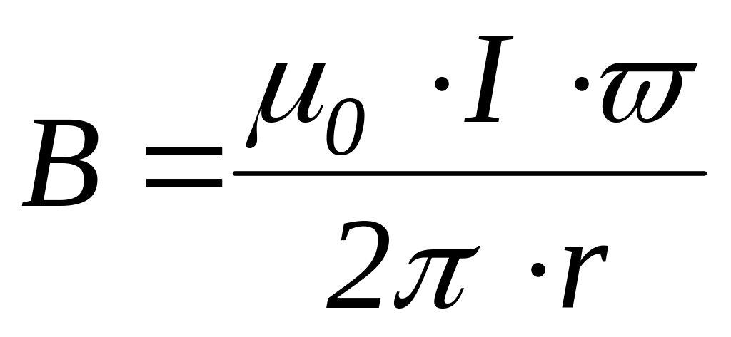 Выберем замкнутый контур радиусом r, совпадающий с линией магнитной индукции в центре сечения сердечника. Полагая намотку витков равномерной, применим формулу (5.5). Тогда