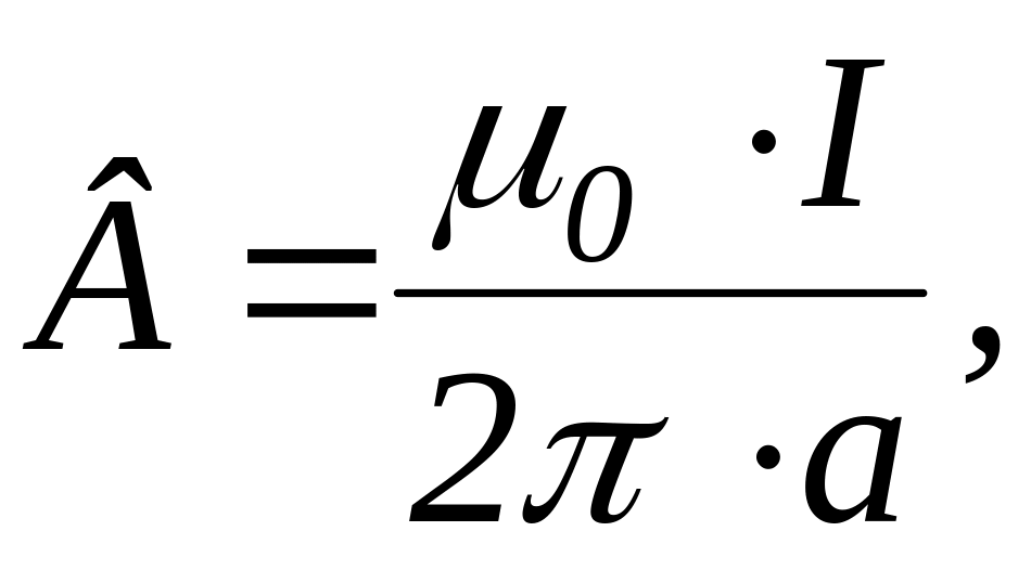 Для оценки магнитной индукции на произвольном расстоянии а от оси провода наметим точку А и проведем чрез нее замкнутый контур, совпадающий с линией магнитной индукции. Контур представляет окружность с центром на оси провода, поэтому магнитная индукция во всех точках контура одинакова. Согласно (5.5) можем записать