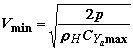 Зона 1 реализуемых высот и скоростей полета самолета (область возможных полетов) ограничена минимально допустимыми 2 и максимально допустимыми 3 скоростями полета. Граница 2 минимальной скорости полета Vmin определится из уравнения горизонтального полетаYa = G как