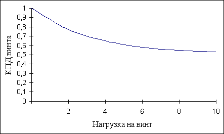 Падение коэффициента тяги связано с изменением характера потока воздуха перед винтом при снижении скорости. Но нам важна не причина, а то, что правильно подобранный винт в статике дает тягу, меньшую тяги при максимуме КПД, не более чем на 15 %.