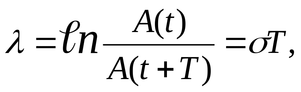 3. Логарифмический декремент затухания . Его определяют как натуральный логарифм отношения двух значений амплитуд, отличающихся на период Т, т. е.