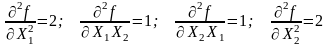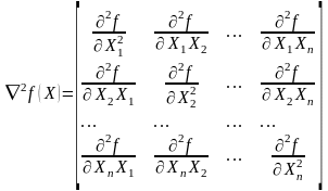 Для определения характера стационарной точки составим определитель матрицы Гессе. Под определителем Гессе понимается определитель, составленный из вторых производных исходной целевой функции.