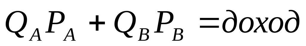 В точке касания кривой безразличия и бюджетной линии (PAQA + PBQB = I)и устанавливается тот набор товаров, который наилучшим образом удовлетворяет потребности потребления при сложившихся ценах и имеющемся у потребителя доходе.