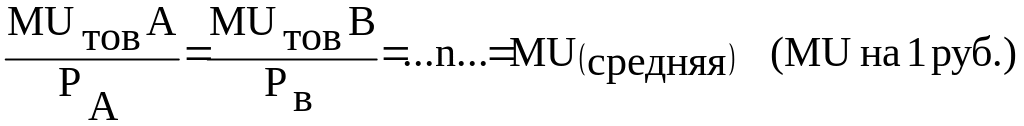 Отношение предельной полезности товара к его цене называют средней предельной полезностью или полезностью на каждый израсходованный рубль.