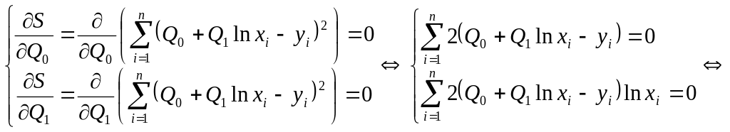 Сума S має екстремум в точці, де частинні похідні від коефіцієнтів дорівнюють нулю. Для нашої конкретної функції маємо: