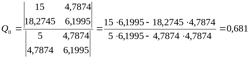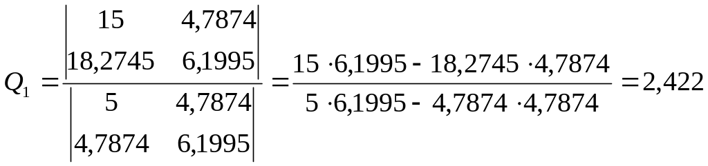Отримали звичайну лінійну систему з двома невідомими. Для її розв’язання спершу розрахуємо коефіцієнти системи.