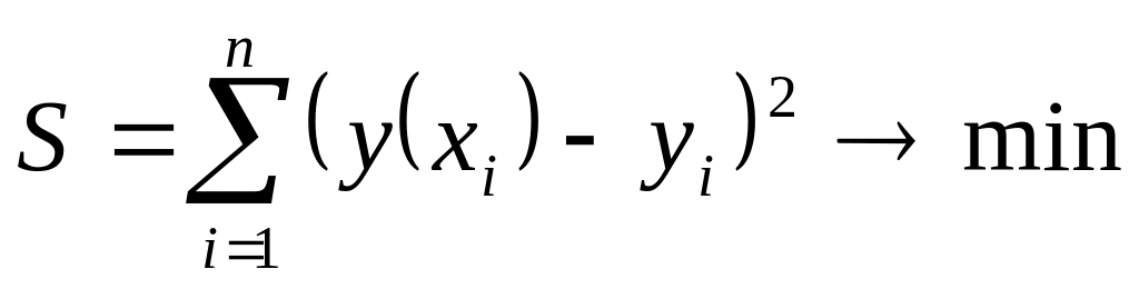 Згідно методу найменших квадратів Гауса сума S квадратів відстаней повинна бути мінімальною, тобто: